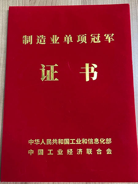 國(guó)家工信部為了指導(dǎo)中國(guó)制造業(yè)向高精尖領(lǐng)域發(fā)展,評(píng)選“制造業(yè)單項(xiàng)冠軍企業(yè)”。將此榮譽(yù)定義為長(zhǎng)期專(zhuān)注于制造業(yè)、研發(fā)生產(chǎn)技術(shù)國(guó)際領(lǐng)先、擁有強(qiáng)大的市場(chǎng)地位、單項(xiàng)產(chǎn)品市場(chǎng)占有率全球前3位。獲得此評(píng)定的產(chǎn)品,意味著獲得了國(guó)家最權(quán)威的認(rèn)可,代表著細(xì)分領(lǐng)域內(nèi)的全國(guó)最高水平以及全球范圍內(nèi)領(lǐng)先的市場(chǎng)份額。